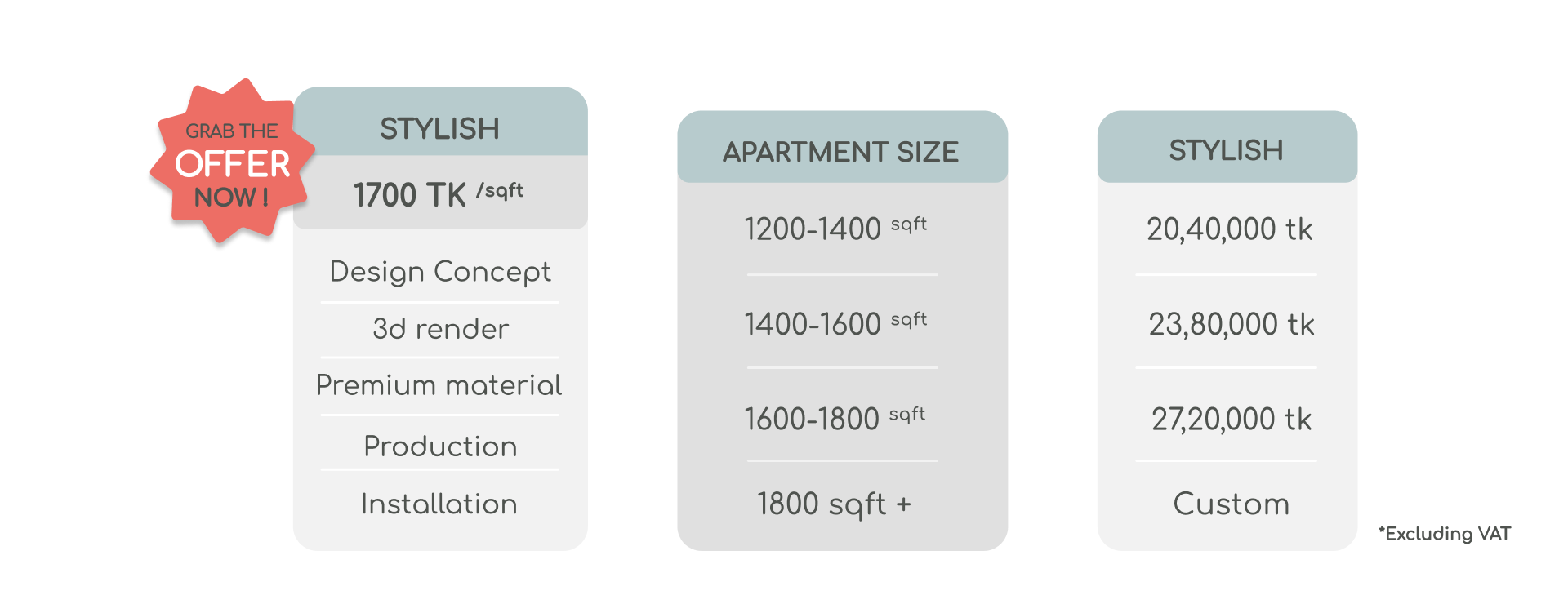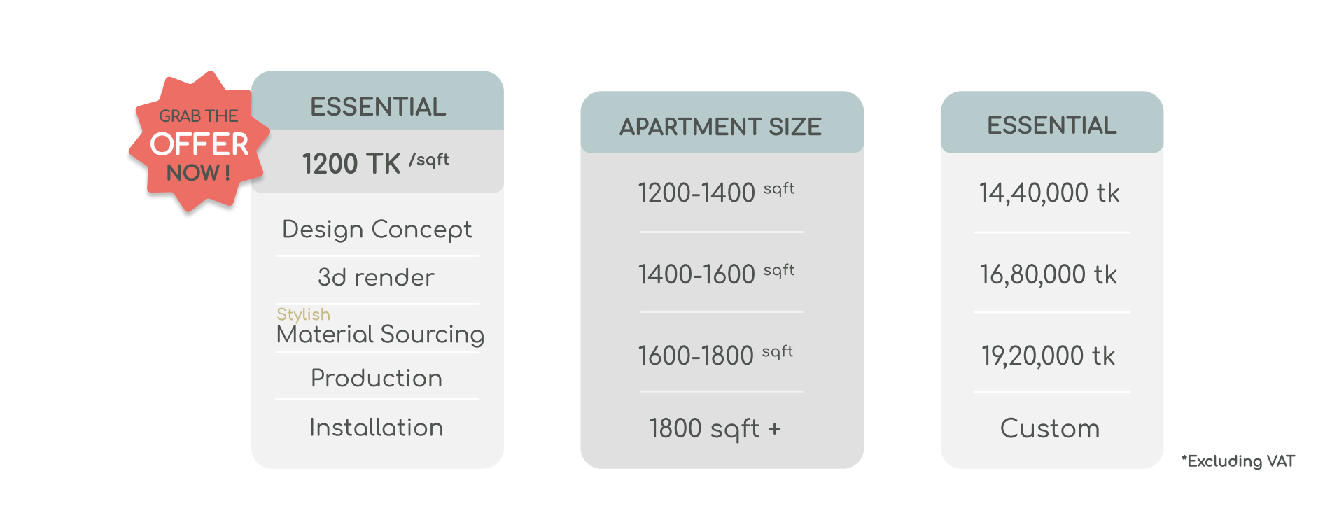 Unveil the allure of effortless elegance with our Interior service Packages. From concept to completion, we curate every detail, transforming spaces into bespoke havens that reflect your unique style and vision.